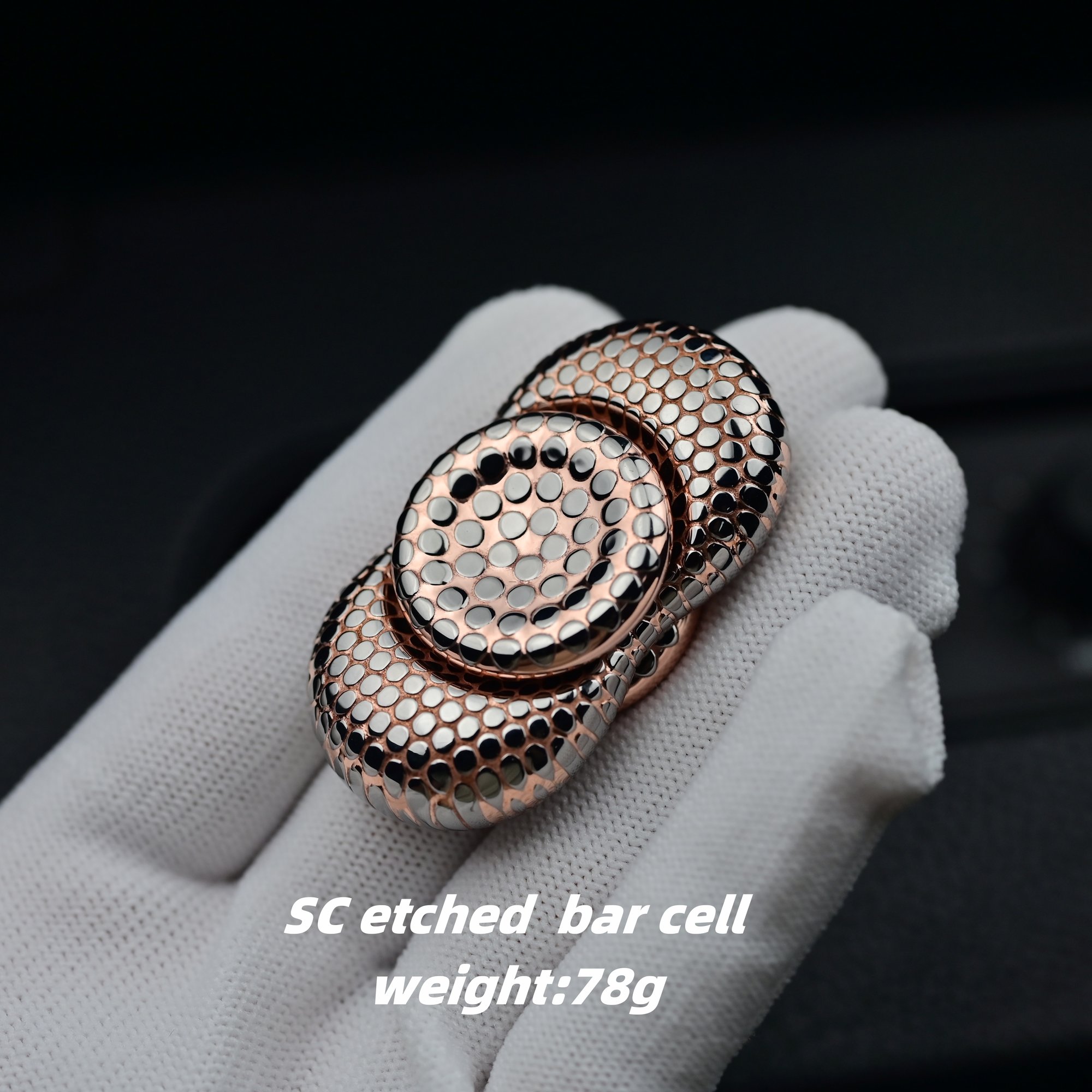 Here we release the exotic Bar Cell spinner .the size is 50mm long, 27mm wide, button is 24.5mmX15mm.the mokume hadTwo options for finishing:1.Eteched and polished(Smooth surface)2.Eteched only(The surface is a bit rough)You can see they are different on attached pictures.DELIVERY TIME:In 1 WEEK. They all limited sell.just for batch for launch. We will post in the group.If you have other requirements,please contact Haixia.